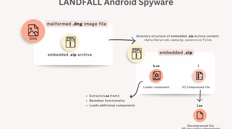 A Palo Alto Networks Unit42 kutatói felfedeztek egy új, kereskedelmi szintű Android kémprogramot, amelyet LANDFALL néven azonosítottak. Ez a kártevő egy addig ismeretlen, ún. zero-day sebezhetőséget, a CVE-2025-21042-t használta ki Samsung Android-es képfeldolgozó könyvtárában, hogy célzott támadásokban részesítse a Galaxy készülékeket. A támadás során a kémprogramot álcázott DNG képfájlokba ágyazva juttatták el az áldozatokhoz, gyakran WhatsApp üzenetekben, anélkül, hogy a felhasználónak bármilyen interakcióra lett volna szüksége (zero-click támadás).