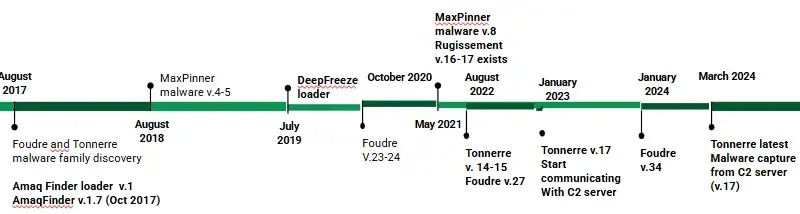 A SafeBreach kutatói kimutatták, hogy a csoport nem szűnt meg 2022 után, hanem éppen ellenkezőleg új, fejlettebb malware-változatokat (Foudre v34, Tonnerre v12-18, v50) vetett be, és innovatív C2 infrastruktúrát épített ki, közte a Telegram platformot is a kommunikációhoz és az adatok kinyeréséhez. A legújabb Tonnerre v50 változatot 2025 szeptemberében érzékelték aktív C2 szerverrel való kapcsolattartás közben, és a csoport folyamatosan változtatja a szervereit, hogy elkerülje a felfedezést. A kutatás során sikerült visszafejteni a C2 szerverek működését, és kiderült, hogy a csoport tesztelési és termelési környezeteket is használ, de a valódi áldozatok száma viszonylag alacsony marad.