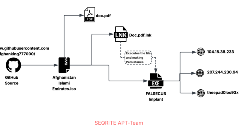 A Seqrite Labs egy Afganisztán kormányzati dolgozóit célzó célzott spear-phishing kampányt azonosított, amely e-mailekkel terjeszt egy hamis ISO-tartalmú csali-fájlt, ami egy félrevezető PDF-et és egy rosszindulatú LNK-t tartalmaz. A megnyitásuk után a FalseCub malware települ, kémkedési képességekkel és adatszerzéssel. A támadók GitHub-ot és rövidített linkeket használnak a terjesztéshez, és a művelet valószínűleg regionálisan fókuszált, alacsony-közepes technikai szintű szereplőtől származik, aki pontosan kidolgozott hivatalosnak tűnő dokumentumokat használ a hiteles hatás elérésére.
