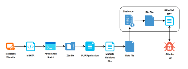 A fertőzési lánc technikai szempontból több lépcsőből áll. A támadók legitim szoftvercsomagokhoz tartozó könyvtárstruktúrákat használhatnak, majd a valódi komponensek közé rosszindulatú DLL-fájlokat helyeznek el. Amikor a program elindul, a rendszer a manipulált DLL-t tölti be, amely további kártevő-modulokat importál és végül telepíti a Remcos RAT végső payloadját. Ez a DLL-csere és többlépcsős betöltési technika segíti a támadókat abban, hogy a malware legitim szoftverkomponensként jelenjen meg a rendszerben.