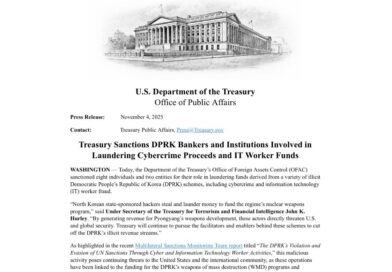 Az Amerikai Egyesült Államok Pénzügyminisztériuma (Department of the Treasury) sajtóközleményében bejelentette, hogy az Office of Foreign Assets Control (OFAC) szankciókat